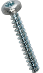 PT skruv för montage i termoplast – Kullrigt huvud, Kullrigt huvud med fläns, Försänkt huvud